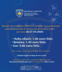 Sipas MINTI-t, një litër naftë gjatë këtyre dy ditëve do të shitet për 1.66 euro.