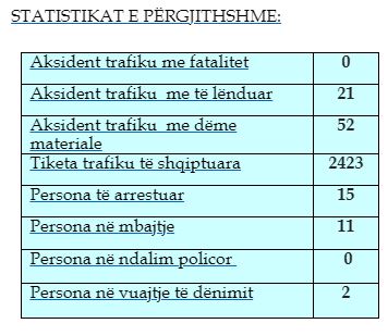 Gjatë kësaj periudhe kanë ndodhue 21 aksidente me të lënduar dhe 52 me dëme materiale.