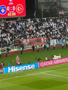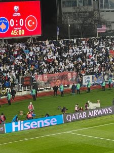 Në ndeshjen e mbrëmshme ndërmjet Kosovës dhe Turqisë, tifozëria “Dardanët” u kujdesën që përveç atmosferës elektrizuese në tribuna, ta përcjellin edhe një mesazh të fuqishëm përmes një koreografie të veçantë.