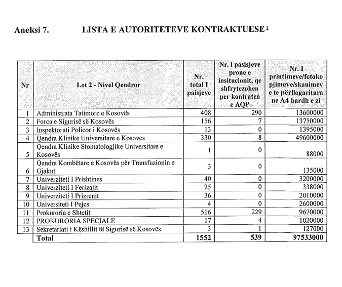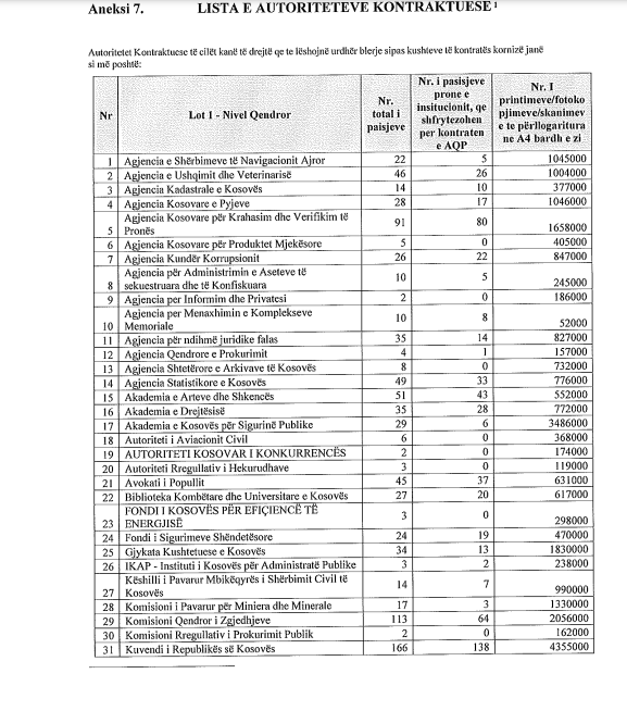 Institucionet e Kosovës do t’i shpenzojnë hiç më pak se 1 milion e 656 mijë euro për shfrytëzimin e fotokopjeve dhe printimit me qira gjatë periudhës së ardhshme 3 vjeçare.
